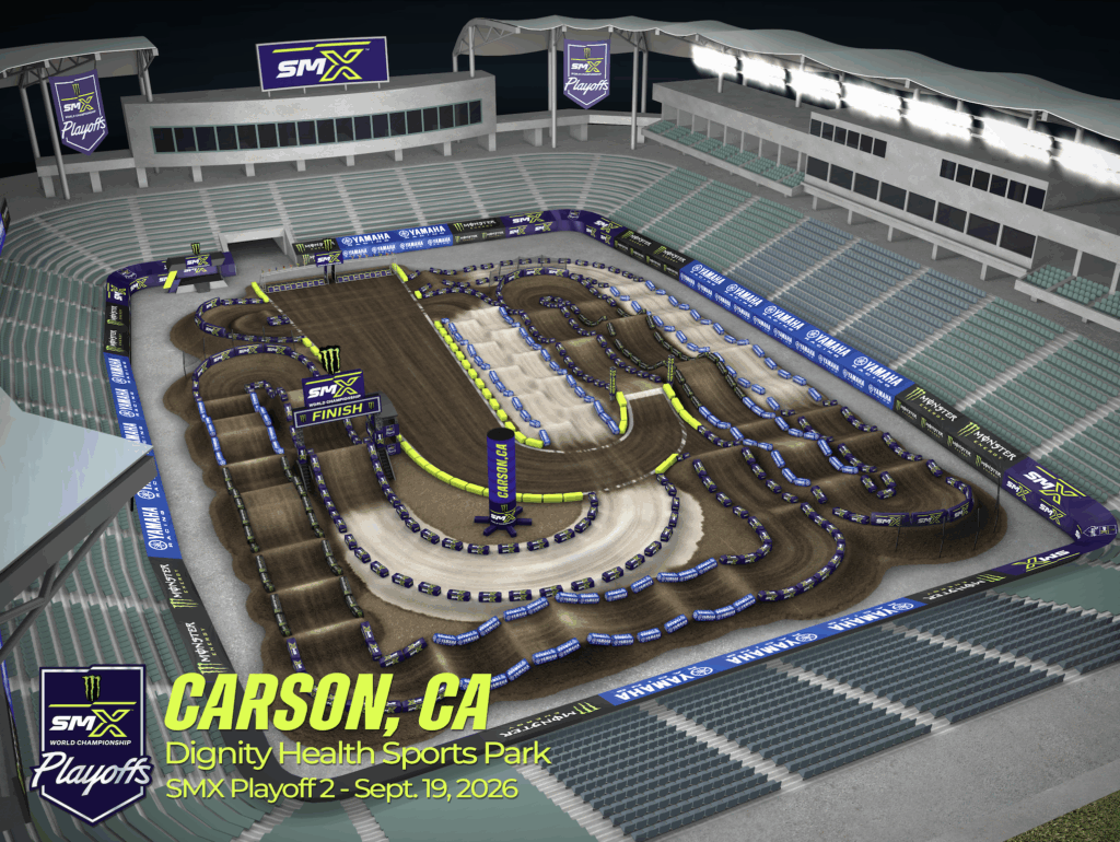 Southern California is a staple in the Supercross and Motocross racing history books, making the area highly desirable for racing when the opportunity is presented. The 2026 regular season began in California a mere three weeks ago and for the first time in its history will also include a postseason round late in the year. Situated in the greater Los Angeles area, Dignity Health Sports Park brings the Playoffs to a market with a long-standing connection to the sport and a strong motorsports and media presence. Sand will be integrated into the track design to create a more natural terrain environment.
