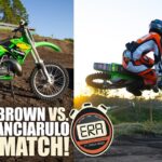 Carson Brown: Yeah, so I’m kind of known for riding any bike. And, you know, riding it anywhere at all these weird places. Everybody wants to see these pro supercross national guys having fun on dirt bikes. They only get to see them, whether it’s on a 250F or 450, and we’re like, hey, how can we get these guys to have some fun? And you know, get them on either a two-stroke or a small bike or vintage bike. And we’re like, you know, let’s set this up. I spend so much time on these weird bikes, let’s throw down some lap times and see where we stand when we put these guys on these weird bikes on weird tracks and just have fun with it have. I mean, that’s what it’s mostly about, is just getting these guys to have some fun and show the other side of them when it’s not super serious. So that’s the main goal of it. And we get to ride dirt bikes and weird ones at that, and they get to get away from their training program for a day. It’s been a blast.
