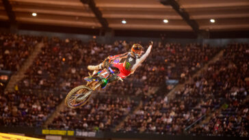 Sexton: I feel like I did have a good speed differential today just from practice and even the heat race. I feel like I was a lot faster, just still didn’t win it. And in the main event, I just told myself, I get a good start, I can make passes pretty easily because I feel like I had good speed and feel like my rhythm sections getting down the lanes fast was really key and I was pretty good at that. So, after that, I just had to hit my marks. It was, like I said, a tricky track to be out front. It did feel like Indy. You just would sit into stuff and it was soft and it didn’t feel like California whatsoever. It was like the opposite of Anaheim 1.
