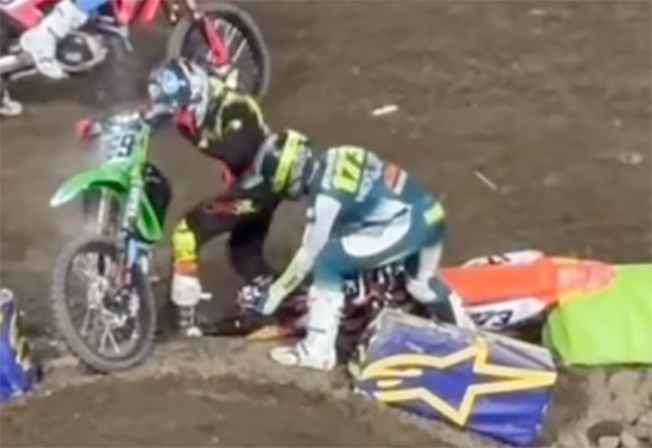 Slaw’s favorite privateer Logan Karnow had a rough go of it at the Anaheim 1 season opener on Saturday. He was involved in that 450 heat race pileup with Hunter Lawrence, Vince Friese and others.