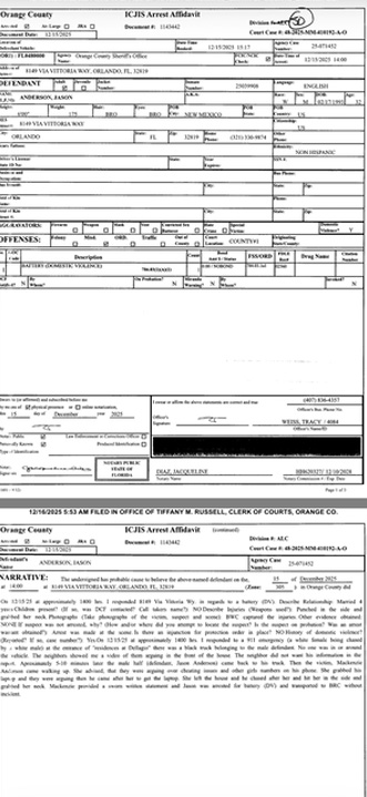 Following Daytona, news began to circulate online that Anderson had been arrested in December of 2025 in Orange County, Florida, for domestic violence. You can read the court documents below.