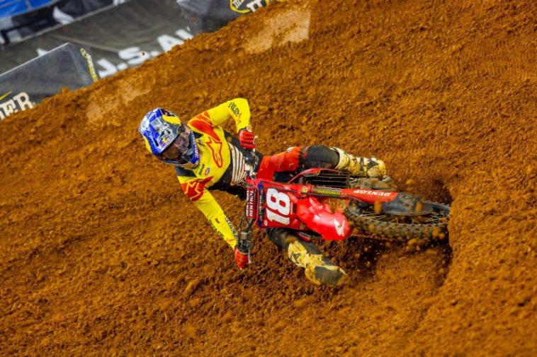 Monster Energy/Pro Circuit Kawasaki’s Cameron McAdoo grabbed his first win of the 250SX East Region at Saturday’s Triple Crown event in Arlington.