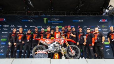 Monster Energy/Pro Circuit Kawasaki’s Cameron McAdoo grabbed his first win of the 250SX East Region at Saturday’s Triple Crown event in Arlington.