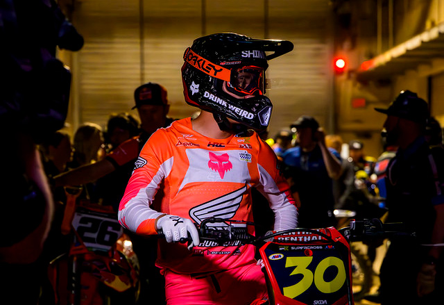 In the 250SX East Division heat race, Phoenix Honda’s Evan Ferry went down and Shimoda was forced to roll the section and was clipped by Luke Clout in the lower part of his leg and immediately went to the ground. The race was red flagged as the Alpinestars Mobile Medical Unit took Shimoda off the track on a medical cart.