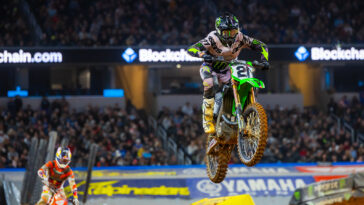 “I overjumped the quad a little bit in qualifying and went into the berm,” he said in a Kawasaki press release. “I tried to grab the net on the edge of the berm because I didn’t have anywhere else to go, and as soon as I grabbed it I felt my shoulder pop out. It’s a shame because it was not a big crash just a little mistake on my part, but I couldn’t avoid it. My shoulder was popped back into place 30 seconds later and it’s feeling good now, not very painful. I need to sit out and rest and see how my shoulder feels after today and evaluate from there.”
