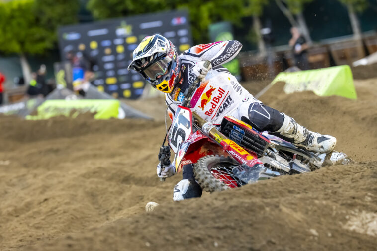 Malcolm Stewart sustained a dislocated shoulder in the crash but was able to return for round 2 in San Diego where he finished 10th overall.