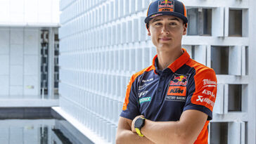 Plucked to star in Red Bull KTM Factory Racing colors for ’23, Everts has again learned and progressed. He sprayed podium champagne for the first time in Italy and the Grand Prix of Trentino (round four) and has since taken the factory KTM 250 SX-F to the rostrum on three other occasions to-date: France, Germany and Indonesia. He sits 5th in the MX2 points table ahead of his home event in Lommel this weekend.