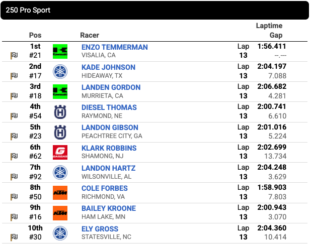 Enzo Temmerman is well on his way to clinching the AMA Horizon Award. The California native entered the final motos with 1-1 motos and didn’t need to win the final moto to clinch the championship.