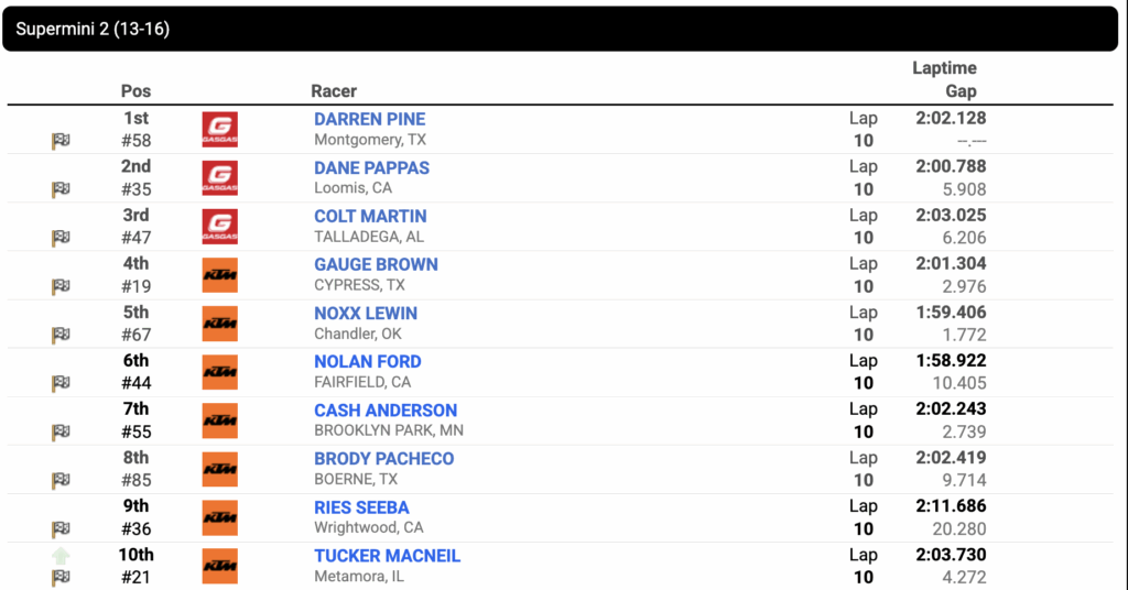 It was Pine Time again early at the Ranch on Friday. Darren Pine grabbed the early lead in the second Supermini 2 moto and was able to run away from the field to take the moto win.