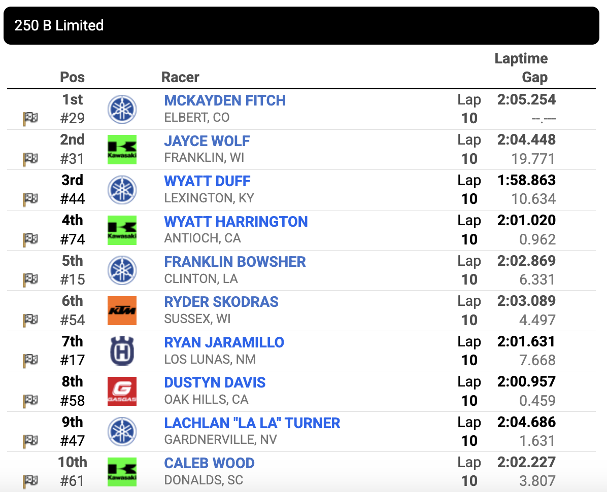 Jayce Wolf and Wyatt Harrington rounded out the moto podium.