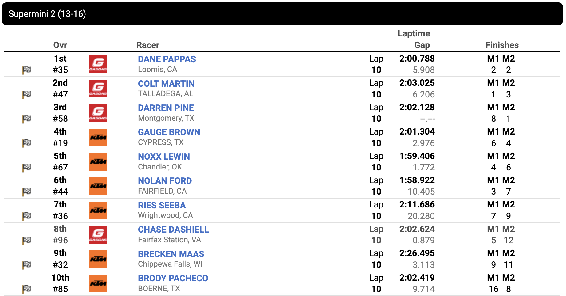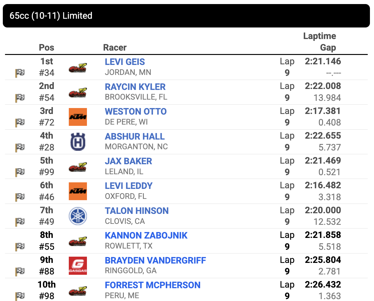 While Pine took the moto win, Pappas is in control of the championship as he sits on 2-2 moto scores.