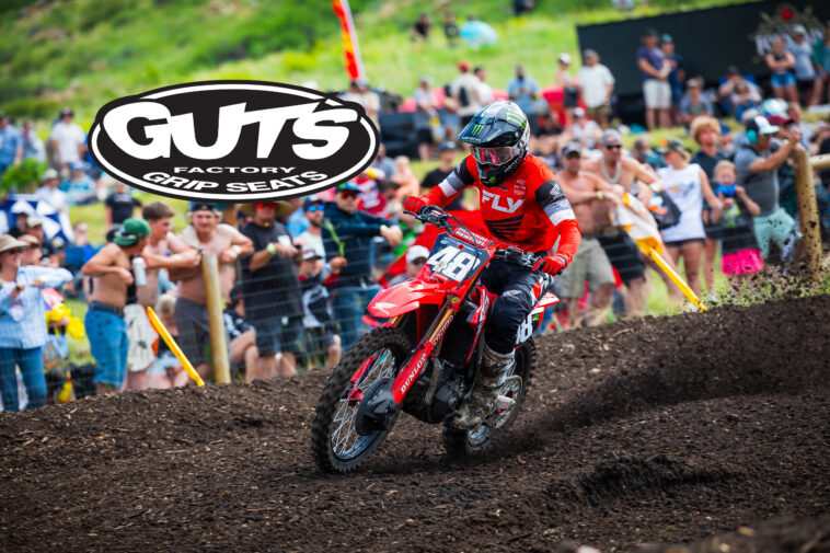 – HUNTER LAWRENCE TRAIN COMING THROUGH! WE’VE CLIMBED THE MOUNTAIN! We’ve got our first moto win and battled for that overall until the end at Thunder Valley. We’ve got the red plate as we head into the ‘Country Club of Motocross’.