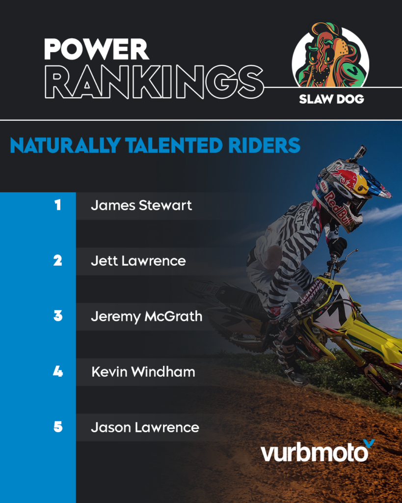 -Stew needs no explanation here. His natural abilities absolutely changed the way that all riders ride these days. The scrub technique was his biggest claim to fame, but what’s most overlooked was that it was his natural ability that helped him perfect the move. Stew was a natural from the moment he got on a dirt bike. He would jump things that no one else even thought about trying.