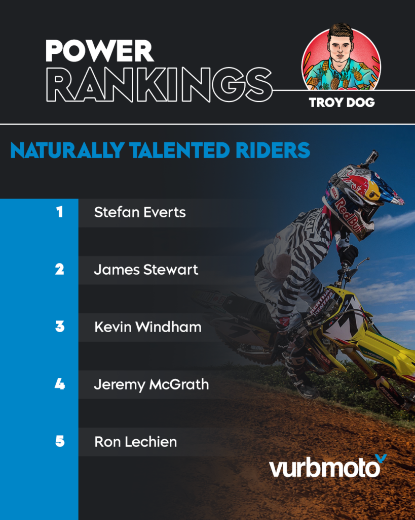 -I was up in the air about whether to put David Bailey here or Ron Lechien, but ultimately Ronny got the nod. The amount of talent Lechien had was incredible. He didn’t put in the training effort and he still would show up in some races and dominate. The stories that he has told about partying before the races and still showing up to win are incredible. It was his talent that allowed him to do that. He would stand up everywhere to save his energy from sitting. What a legend.