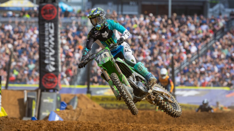 Once out front, Temmerman stormed out to a lead of more than 20 seconds as Oehlhof encountered misfortune and was ultimately unable to finish the moto. Temmerman carried on to take the win 25 seconds ahead of Gordon for a Team Green 1-2, while Rockstar Energy Husqvarna’s Landon Gibson put forth an impressively resilient ride to overcome a 16th-place start and finish third. Hartz followed in fourth, with Thomas rounding out the top five.