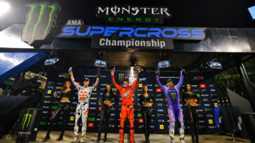Across 9 rounds of racing, Sexton scored 9 more points, 218 to 209, than Monster Energy/Star/Yamaha Racing’s Shane McElrath to earn his second consecutive Monster Energy AMA Supercross, an FIM World Championship, National No. 1 plate.