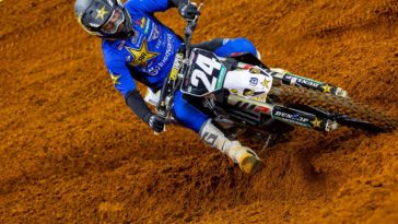 Well, Nashville happened and it’s amazing how quickly things can change in this sport. Hampshire grabbed the holeshot in the main event while Kitchen came together with his teammate Cameron McAdoo immediately in the first rhythm section. Kitchen wasn’t getting up quickly and for a minute there it looked as though he may not get back in the race at all.
