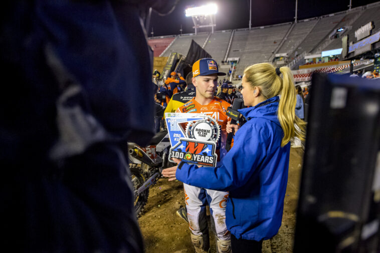 While Juju’s season did not end the way he wanted it to, it was a hell of a rookie season for the 18-year-old, who celebrated his birthday at the final round. Julien had a good night going for himself until the main where he was coming through the pack and unfortunately got tangled up with Seth Hammaker, which ended the night. Juju received the Rookie of the Year Award and the AMA nailed it. Julien had a fantastic rookie year with seven top tens, won a lcq, and made the main every round and showed us that he can battle up front a little bit. Beaumer showed the rest of the industry that he is going to be a threat in upcoming years and I’m excited to see what he can do outdoors.