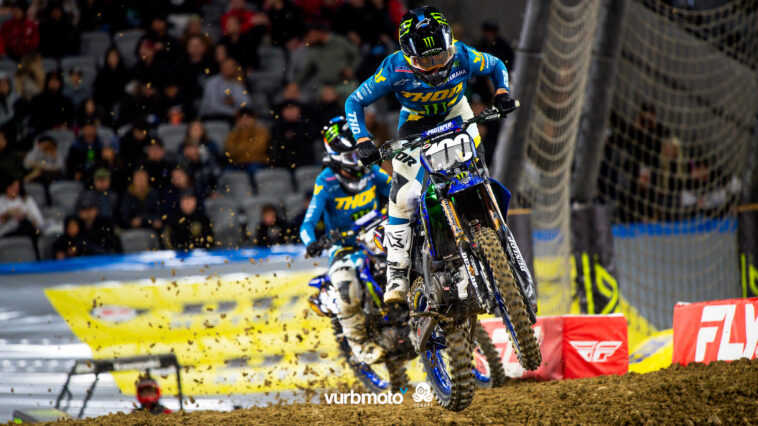 “It definitely was a good day today and a step in the right direction,” he said in a Yamaha press release. “I was seventh in qualifying and wasn’t too happy with that, to be honest, but I reset for the heat race. I got a good gate pick and ripped a great start, and got my first-ever heat race win, so I’m stoked about that.”