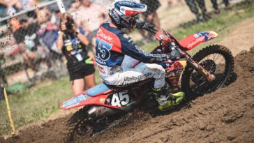 After back-to-back ninth place overall finishes at Thunder Valley and High Point, it’s been a struggle for rookie Dilan Schwartz, as he’s gone 19-22 at RedBud and Southwick. That ain’t happening this weekend. He sneaks back into the top ten…. at least in one moto.