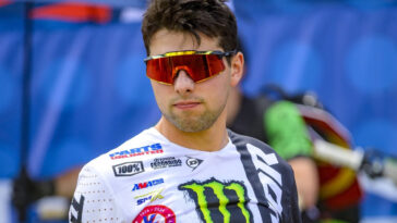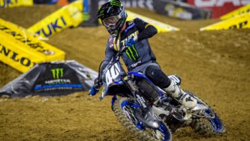Monster Energy/Yamaha Star Racing’s Stilez Robertson jumped out to the early lead at the fifth round of the championship and led the opening four laps before getting cross rutted in the whoops and going down hard.