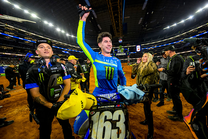 It is rare we get two first-time winners on the same night in Monster Energy AMA Supercross. How rare? Prior to Arlington on Saturday when Honda HRC Progressive’s Hunter Lawrence (450SX) and Monster Energy/Yamaha Star Racing’s Pierce Brown (250SX) captured their first career wins, it had only happened 10 times in history!