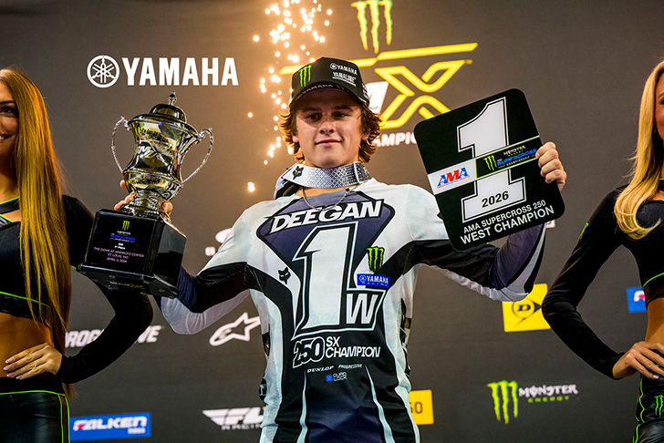 Since that opening round finish off the podium, Deegan has been unstoppable, winning six straight races, capping off a brilliant season with a second 250SX West Division title in St. Louis on Saturday. (Ed note: He won the East/West Showdown in Birmingham, but had his win taken away due to a penalty when he crossed over track markers in a split-lane section of the track.)