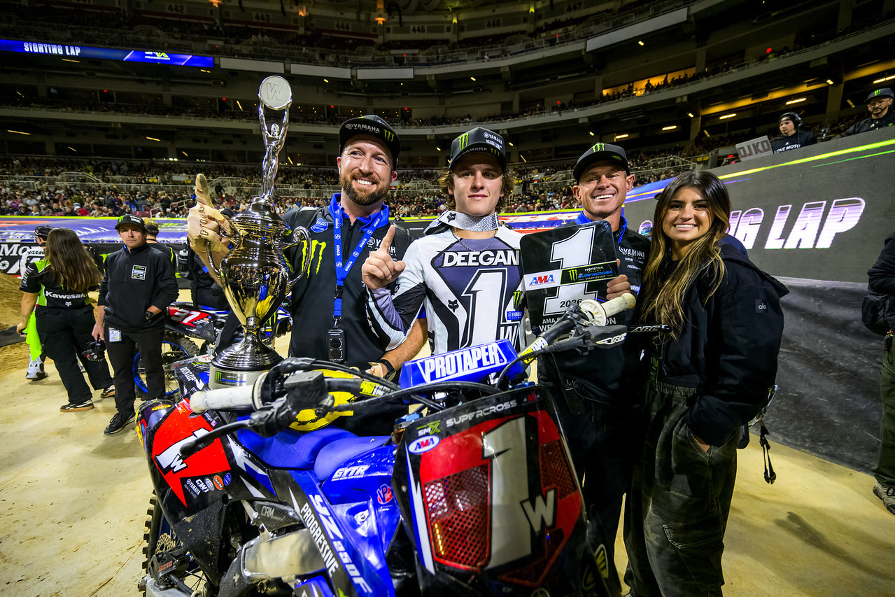 Since that opening round finish off the podium, Deegan has been unstoppable, winning six straight races, capping off a brilliant season with a second 250SX West Division title in St. Louis on Saturday. (Ed note: He won the East/West Showdown in Birmingham, but had his win taken away due to a penalty when he crossed over track markers in a split-lane section of the track.)