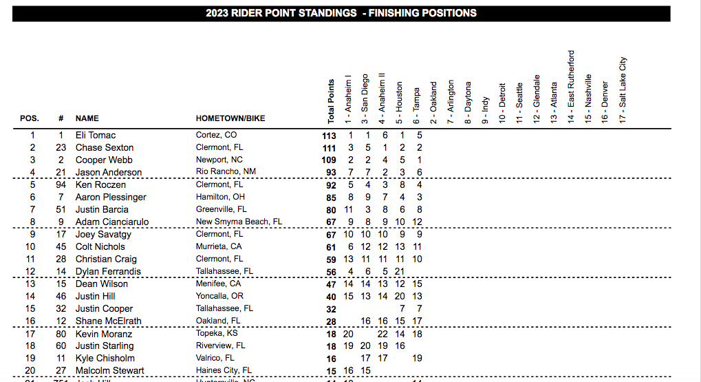 450SX Point Standings