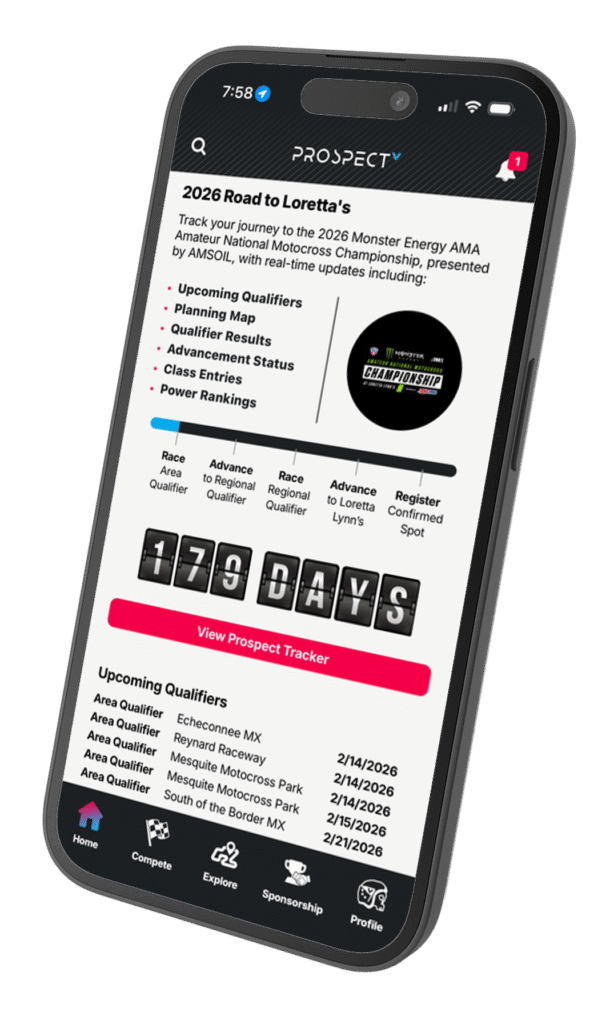 The road to the 2026 Monster Energy AMA Amateur National Motocross Championship at Loretta Lynn’s begins next weekend with Area Qualifiers kicking off and now you can track your road to the ranch like never before. The Road to Loretta’s Tracker is now LIVE on the Vurbmoto Prospect app and includes: