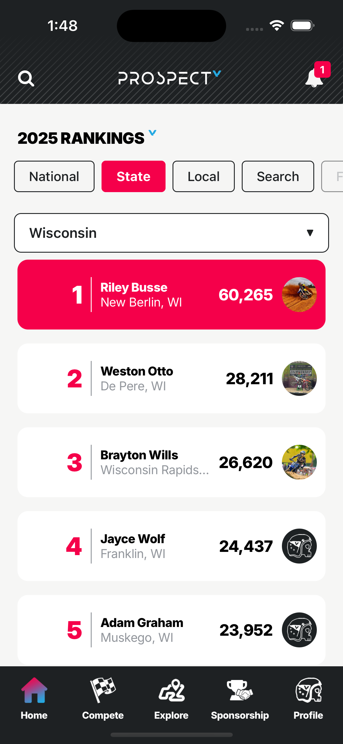 Now, thanks to the Vurbmoto Prospect app, we’ve finally put an end to the madness. Much to the chagrin of Billy and Jonny—who are definitely NOT No. 1—we can now tell you the top-ranked rider in every state.