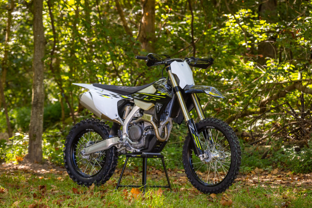 Additional race-ready features include ODI lock-on grips, ProTaper Evo MX Alloy handlebars, and an Exedy racing clutch for precise engagement under pressure. A Dell’Orto 1.73” (44mm) throttle body and Triumph’s ECU, developed in partnership with Athena, optimize engine performance, while a TwinAir washable air filter simplifies maintenance. Both models also feature 2.2 US gal (8.3L) translucent fuel tanks, enduro hand guards, heavy-duty handguards, and side stand, completing a package built for uncompromising cross country performance.