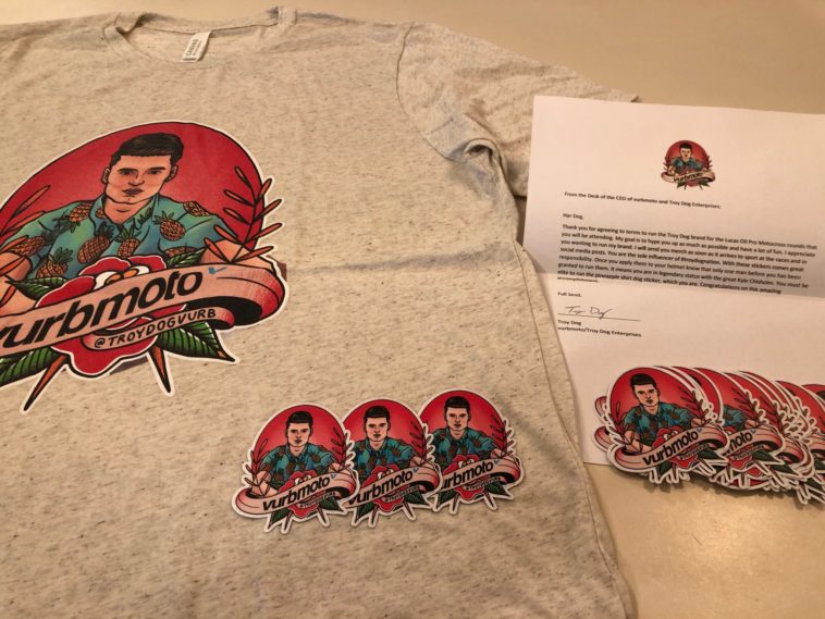 In case you’ve been living under a rock the past few months, you should know that Grant Harlan and I are about to embark on a very big quest. We’ve got six rounds of the Lucas Oil Pro Motocross Championship to get to and Har Dog has pineapple shirt dog stickers in hand. He will be wearing them proudly on each side of his Arai helmet to represent the Troy Dog Squad.