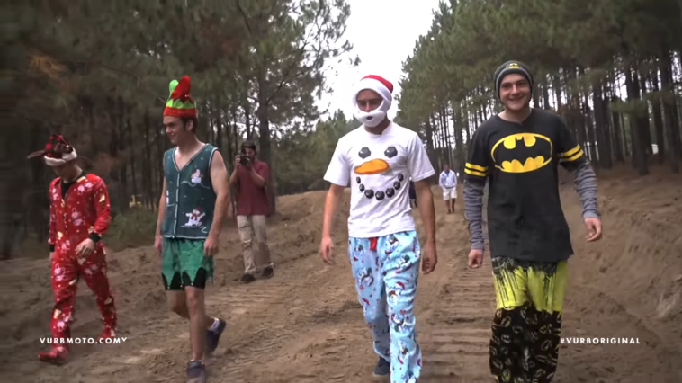 I’ll make this super special edition of Vintage Vibes short and sweet. It’s the Christmas party at the Dreamland from 2012 with Dozer Dog, Cooper Webb, Jimmy Decotis, and Jordon Smith. We dressed them up in the most ridiculous outfits that we could find at Wal Mart and made them throw huge whips. Clark, that’s the gift that keeps on giving all year and every year. How in the heck was this nine years ago?