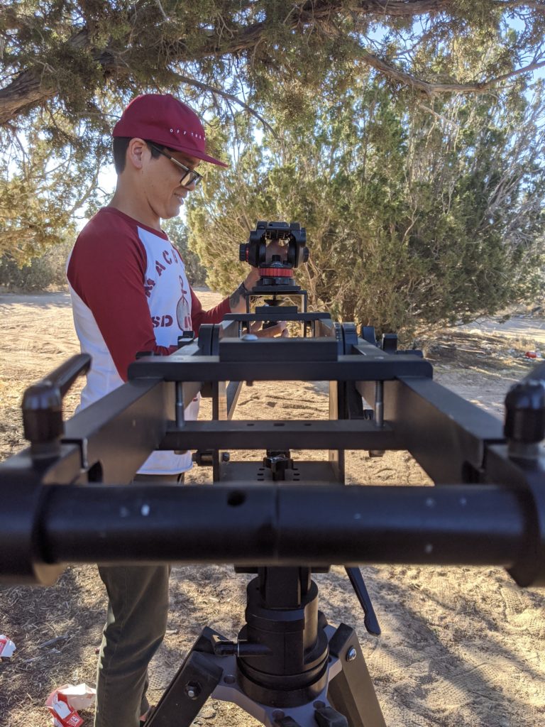 For example, when I work with Kyle (DoP), I’m also setting up lighting and rigging up things like diffusion panels to make things look good, or mic’ing our subject for proper sound. While on a much larger production you’d have a dedicated crew of experts for those jobs. In most cases, Kyle and I pretty much do it all, which has worked out very well for me, as I have learned quite a bit of everything from him. Kyle, who’s been basically a one-man-band for most of his career, has thrown me right into the thick of it, and has graciously let me pick his brain about anything and everything cinematography. Be it the technical aspects of the camera, lighting set up or audio recording, I’ve had an opportunity to gain hands on experience in practically all of it.