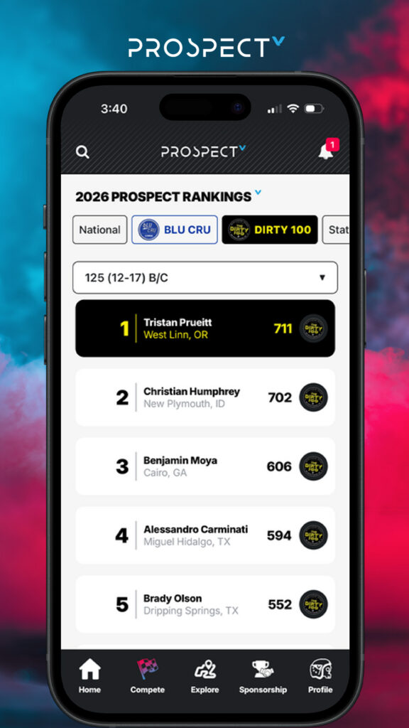 Inside the Prospect app, the DIRTY100 rankings will now live alongside rider profiles, results, and performance data, allowing users to follow the championship battle as it unfolds throughout the season.